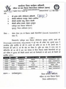 महिला एवं बाल विकास विभाग की एकीकृत बाल विकास परियोजना कुकदुर के अंतर्गत मुनमुना और अमनीया सेक्टर में पोषण ट्रैकर एप्प में दर्ज बच्चों के स्वास्थ्य डेटा में गंभीर