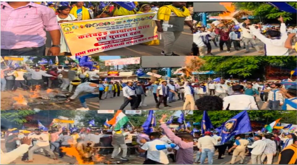 गोंडवाना गणतंत्र व भीम आर्मी का कलेक्टर घेराव – मुख्यमंत्री-उपमुख्यमंत्री का पुतला दहन, SC महिला शोषण, कामठी व डोंगरगढ़ विवाद को लेकर गोंडवाना समाज का उग्र आंदोलन, फूटा आक्रोश गोंडवाना समाज ने कवर्धा में जोरदार प्रदर्शन कर प्रशासन और सरकार के खिलाफ अपना आक्रोश प्रकट किया। समाज के सैकड़ों कार्यकर्ता और पदाधिकारी एकत्र होकर एससी वर्ग की महिला के साथ हुए कथित शोषण, कामठी एवं डोंगरगढ़ से जुड़े विवादों और समाज के प्रति बढ़ते अन्याय के विरोध में सड़कों पर उतर आए।