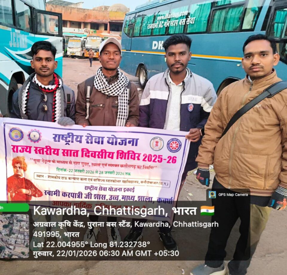 कवर्धा: हेमचंद यादव विश्वविद्यालय, दुर्ग की राष्ट्रीय सेवा योजना (NSS) इकाई की एक विशेष टीम राज्य स्तरीय सात दिवसीय आवासीय शिविर में भाग लेने के लिए बलौदाबाजार हेतु रवाना हो गई है। यह शिविर 22 से 28 जनवरी 2026 तक शासकीय दाऊ कल्याण सिंह महाविद्यालय, बलौदाबाजार में आयोजित किया जा रहा है। उच्च शिक्षा विभाग छत्तीसगढ़ शासन के निर्देशानुसार आयोजित इस शिविर में विश्वविद्यालय के चयनित स्वयंसेवक अपनी प्रतिभा का प्रदर्शन करेंगे और नशा मुक्त समाज का संदेश देंगे।