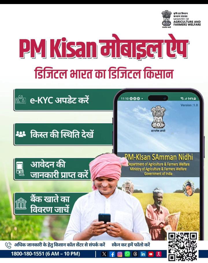 👉 इस ऐप के जरिए किसान भाई eKYC अपडेट कर सकते हैं, किस्त की स्थिति जान सकते हैं, आवेदन की जानकारी प्राप्त कर सकते हैं और अपने बैंक खाते का विवरण भी आसानी से जांच सकते हैं।