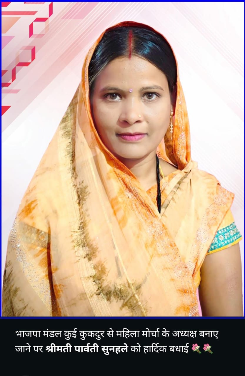 कुई-कुकदूर: भारतीय जनता पार्टी के संगठन विस्तार और सक्रियता को देखते हुए कुई-कुकदूर मंडल में नई नियुक्तियाँ की गई हैं। इसी क्रम में श्रीमती पार्वती सुनहले जी को भाजपा महिला मोर्चा, मंडल कुई-कुकदूर का अध्यक्ष मनोनीत किया गया है।